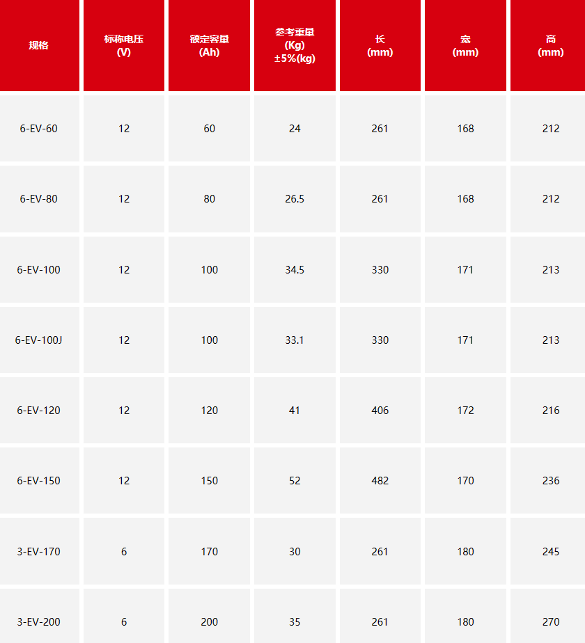 电动道路车用密封铅酸蓄电池主要是指专门为电动汽车(EV、BEV)、电动道路车,混合动力汽车(HEV)开发设计的阀控密封式免维护铅酸蓄电池。电动道路车用密封铅酸蓄电池其主要规格有:6-EV-60、6-EV-80、6-EV-100、6-EV-120、6-EV-150、3-EV-170、3-EV-200、3-EV-260、4-EV-150等。