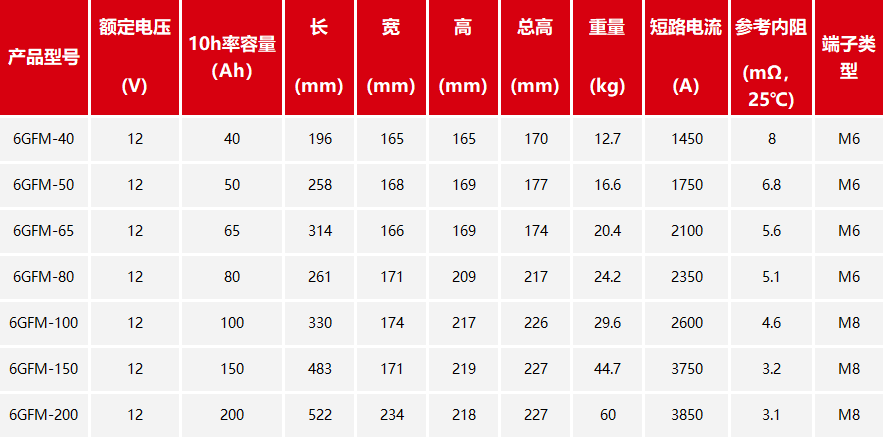 1. 容量范围(C10):40Ah—200Ah(25℃);