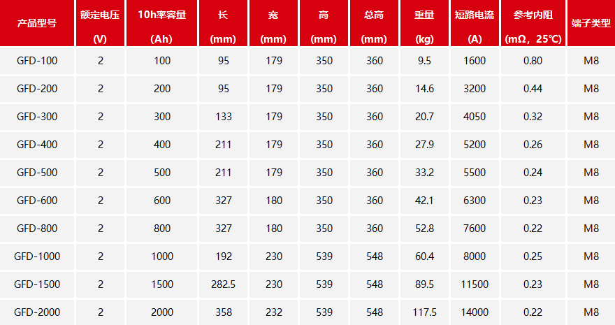 1.容量范围(C10):100Ah—1500Ah;